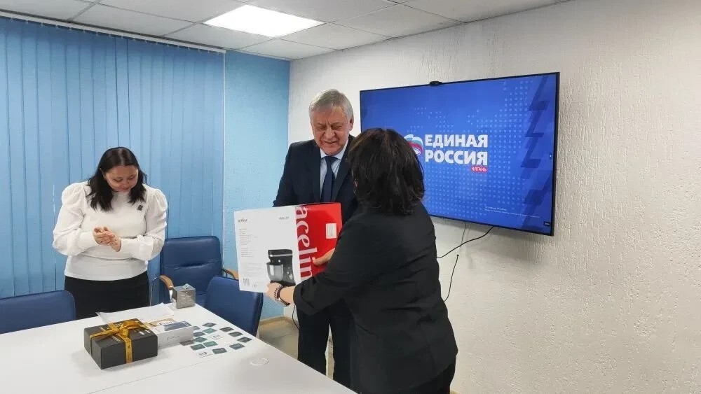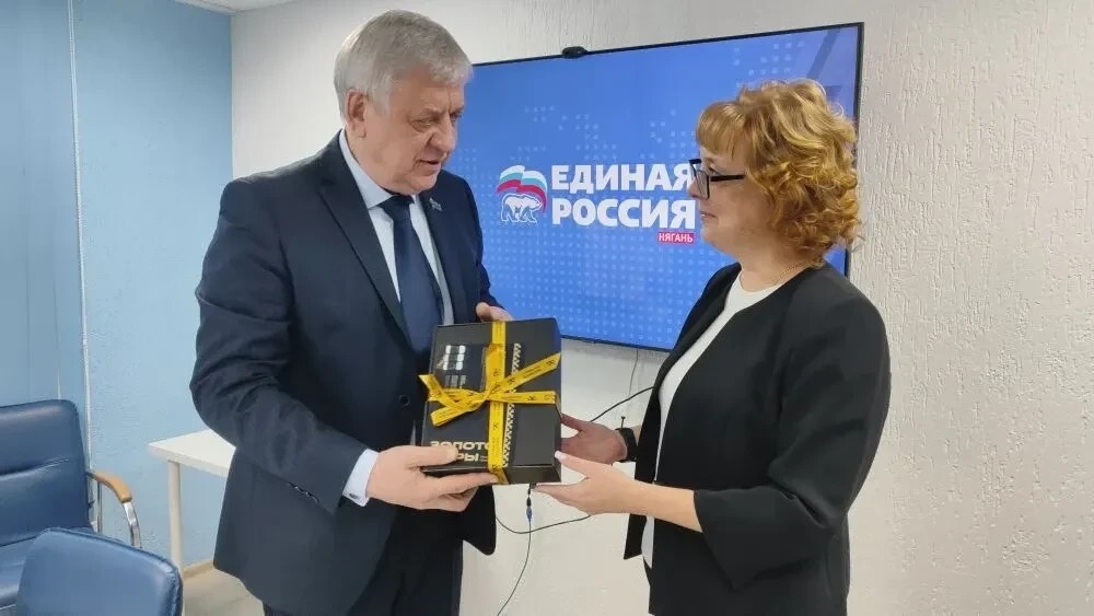 Подарки няганским победителям вручил председатель фракции «Единой России» в Думе Нягани Василий Меркулов.
